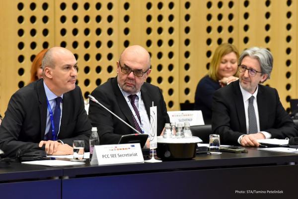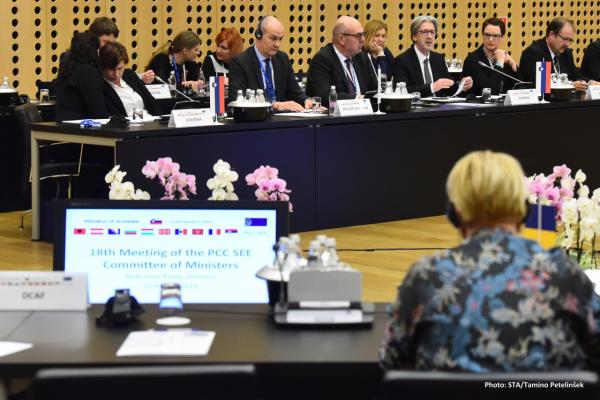 Brdo pri Kranju, Slovenia - On 15 March 2018, the 18th meeting of the highest PCC SEE statutory body - the Committee of Ministers - was held at Brdo pri Kranju under the auspices of the Slovenian PCC SEE Chairmanship-in-Office. The Committee of Ministers reviewed the developments in the 5 PCC SEE core clusters, mainly focusing on the establishment of an EU Prüm-inspired framework for automated exchange of DNA, dactyloscopic and vehicle registration data in the PCC SEE region. In this light and as one of its key priorities, the Slovenian Chairmanship is committed to invest special effort in continuing the process of integrating Prüm decisions into the partnership of the Contracting Parties and seeing the negotiations of the new EU Prüm-inspired legal framework successfully concluded in May 2018 and subsequently signed in September 2018 on the occasion of a conference to be held under the auspices of the Austrian Presidency to the Council of the EU.